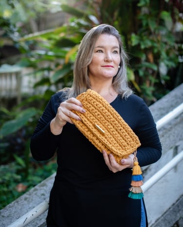 Descobri no crochê uma maneira de expressar a minha criatividade pulsante e habilidade manual nata.